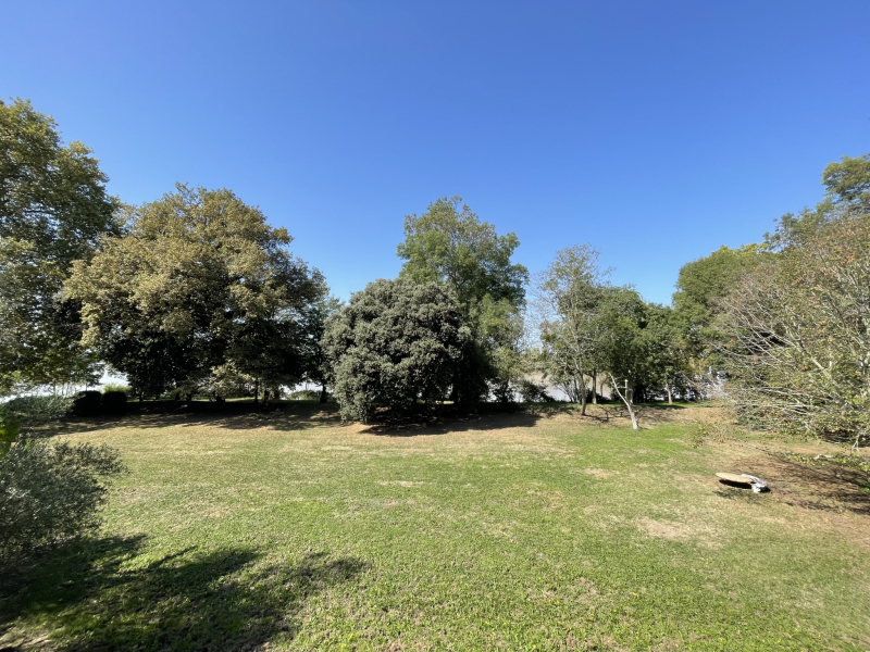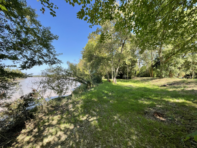 Le terrain est arboré et offre une vue imprenable sur la Dordogne.