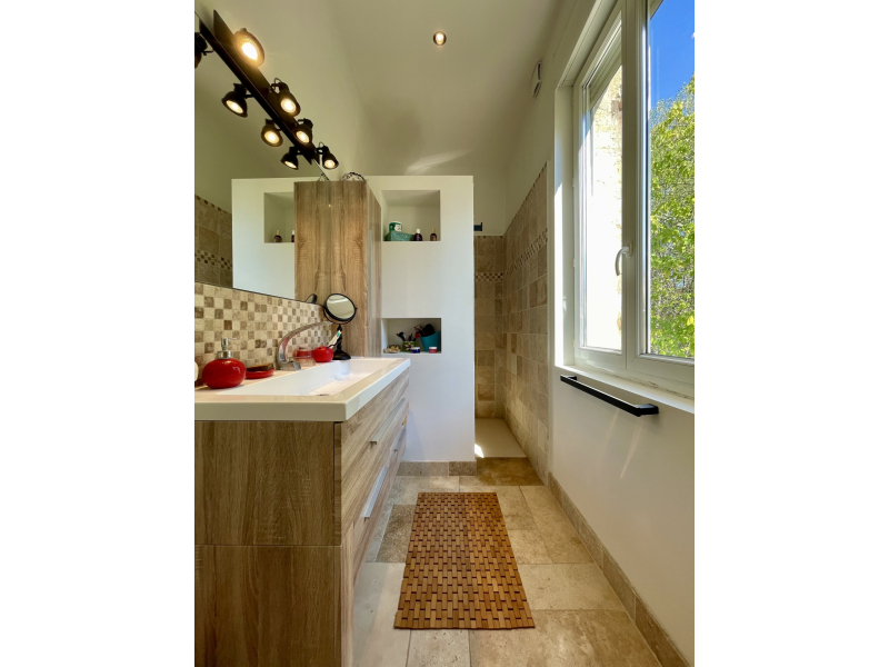 Une dépendance aménagée complète la bâtisse avec un séjour cuisine ouverte, une chambre et une salle d'eau. Cette partie peut être louée ou ratachée à la maison.